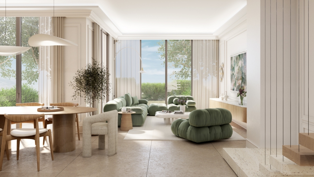 We are thrilled to embark on one of our most sustainability-driven projects to date: the complete interior design of a three-bedroom townhouse within Shamsa Townhouses, a thoughtfully crafted residential community in Expo Valley, developed by Expo City Dubai. Set within an undulating natural landscape overlooking a protected nature reserve, lake, and wadi, this development offers an extraordinary canvas for a home shaped by nature, calm, and conscious living.