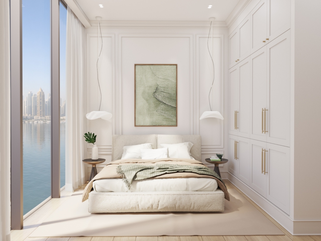We are delighted to introduce our latest Dubai commission: a complete interior design concept for a newly built apartment within Nautica One and Nautica Two, Select Group’s striking residential towers rising over the shoreline of Dubai Maritime City. Set between Port Rashid and Dubai Drydocks World, this emerging waterfront enclave is fast becoming one of the city’s most coveted addresses.