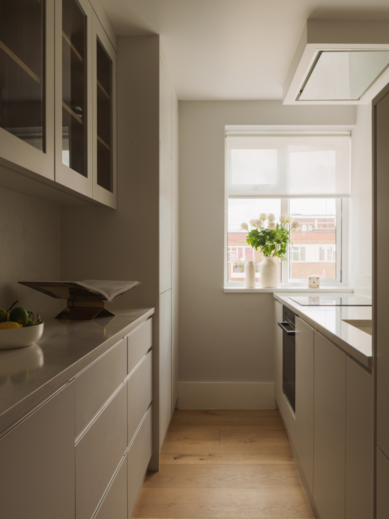 Our vision for the refurbishment was to bring a sense of airiness, clarity, and modern calm into the space. The design centres around lightness — both in palette and in flow — allowing the natural brightness of the top-floor vantage point to become the defining feature of the home.